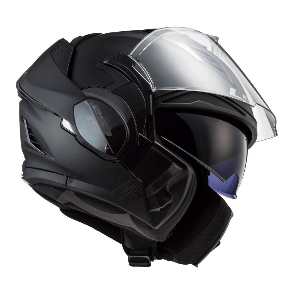 Конкуренция на рынке шлемов-модуляров, у которых подбородочная дуга закидывается на затылок, заставила обновить великолепную модель LS2 FF399 Valiant до его следующей версии – Valiant II. Прежде всего изменился сам механизм откидывания «челюсти». Он стал надёжнее и меньше. Теперь FF900 Valiant II – один из самых компактных шлемов такого типа на рынке. По-прежнему челюсть можно поднять и закрыть одной рукой на любой скорости вне зависимости от положения визора – при опускании челюсти визор автоматически поднимется, и их траектории не пересекутся, что исключает царапины и потёртости. Сам визор изготовлен из прозрачного поликарбоната высокой прозрачности, не дающего оптических искажений. Изнутри его устанавливается плёнка Pinlock Max, исключающая запотевания при низкой температуре и высокой влажности воздуха. Стекло сменное, но менять его на тёмное не придётся – в шлем встроено дополнительное выдвижное тёмное стекло Twin Shield System. Изменилась вентиляция – воздухозаборники на подбородо