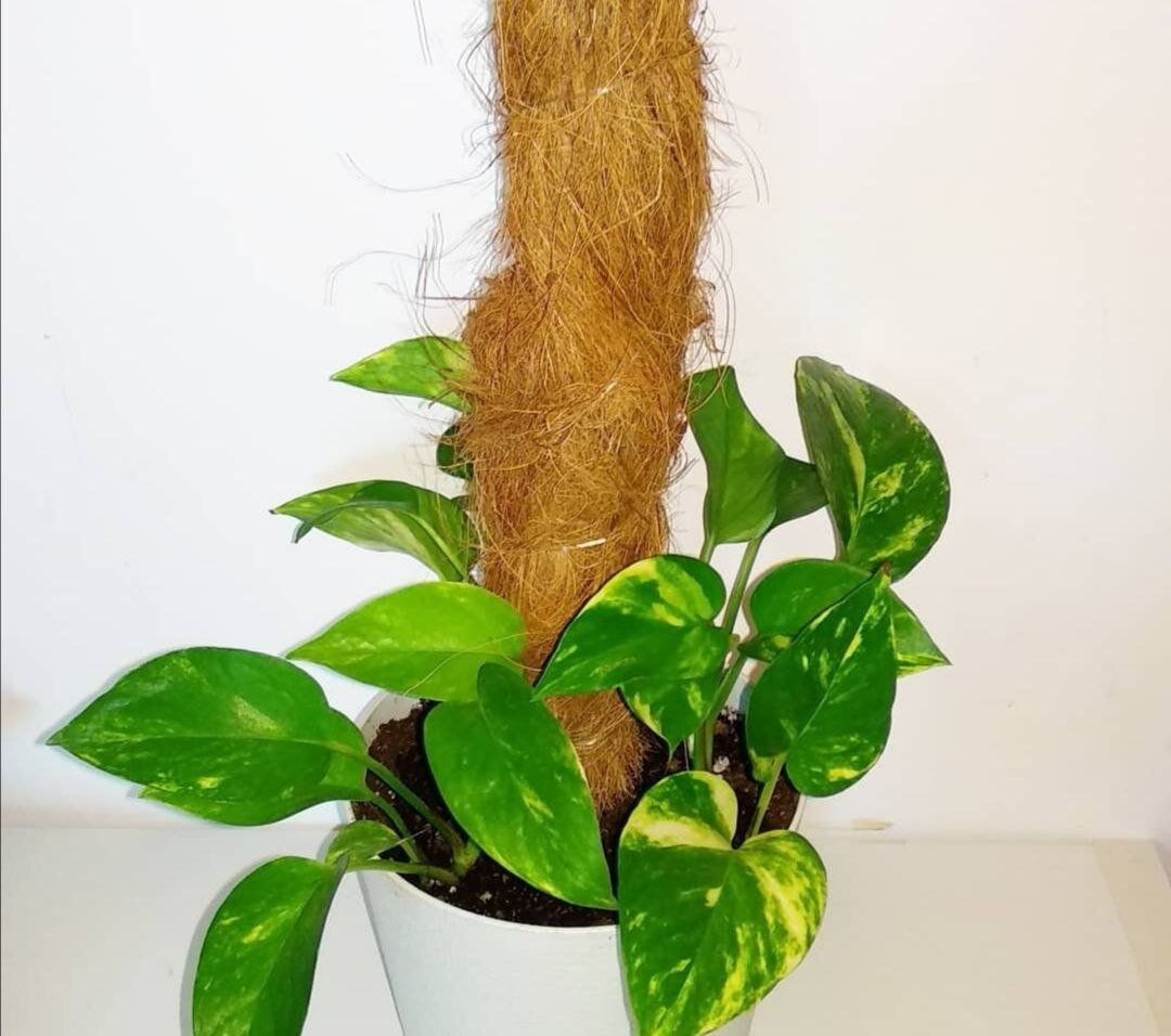 Решила попробовать сформировать сциндапсус золотистый по опоре вверх. Главная цель: не только оформить красиво растение, но и добиться значительного увеличения размера листа. Считается, если сциндапсус будет направлено расти вверх, то размер листа будет 20х20, а может и больше. Сейчас у меня был второй этап. На первом этапе я укоренила все черенки в отдельных стаканчиках. А на втором этапе - я поставила опору и посадила черенки сциндапсуса в один горшок, с разных сторон.