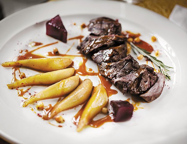Косуля в красном вине - изысканное блюдо, которое не стыдно подать и на романтический ужин, и на праздничный обед. Причем времени на создание такого шедевра из "дикого" мяса потребуется совсем немного. Прежде всего из-за использования вырезки, которая недаром считается самой нежной частью любой туши. Но, чтобы косуля гарантированно получилась сочной, мы замаринуем ее в уксусной заправке и нашпигуем свиным салом. А вот дополнительные вкусовые нюансы блюду обеспечит красное вино, гвоздика, зелень и коренья. Ингредиенты Способ приготовления Перед подачей обязательно дополните вырезку легким гарниром из овощей и любым ягодным соусом. Его можно приготовить на основе оставшегося бульона. ---------------- Купить косулю для ваших рецептов вы можете в нашем интернет-магазине dikoed.ru. У нас огромный выбор экзотического мяса и деликатесов из дичи.