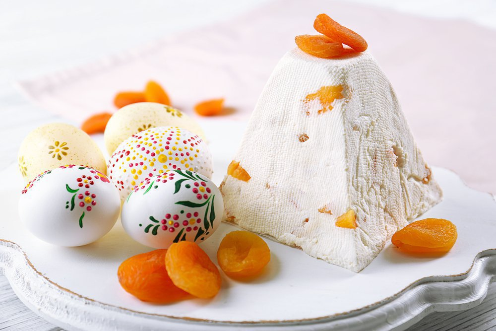 Когда масса станет более густой и яйца «схватятся», нужно охладить массу, выстлать форму двумя слоями марли (не делая складок) и тщательно утрамбовать. Затем дать постоять в холодильнике не менее 10 часов. По истечению этого времени, нужно перевернуть форму дном вверх, аккуратно снять ее и снять марлю. Украсить можно чем