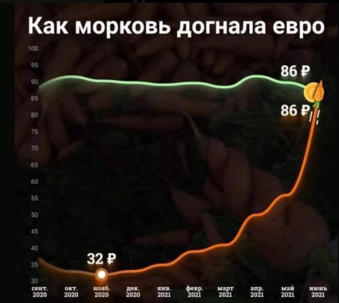 В магазинах творится какой-то маразм, даже несмотря на сезон. Никогда такого не было, чтобы свекла с морковкой, даже когда до нового урожая еще остается месяц-два стоила столько. Это же обалдеть – свекла стоит дороже курятины. Увидел вот такой прикольный график, сделанный N1 по екатеринбургской статистике. Из него можно сделать чудесный вывод: Занимаясь инвестициями во всякие там биткоины и прочие акции, вы страдаете фигней. Надо было в морковку средства вкладывать. Вот где прибыль закопана. Зашел по дороге домой в магазины. И это, скажу вам, жесть какая-то. За ломаную морковку в «Пятерочке», к которой я даже близко не подойду, хотят 80 рублей. Ценник прилагается. За свеклу – 99. Свекла, кстати, тоже так себе, с той какая продается на рынке – никакого сравнения. Справедливости ради, я на рынке пучок молодой свеклы ради ботвы купил, там просили по 30 рублей за свеколку ну такая, не очень большая (в прошлом году рублей по 50-60 за пучок из трех свеколок меньшего размера вроде платил). Т