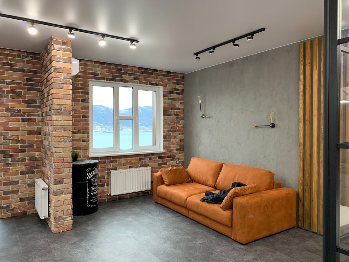 Фото после окончания ремонта. Работа для агенства по аренде элитной недвижимости и премиум авто SEROVA KSENIA car&apartment. Заказчик хотел что-то серое в стиле лофт и бюджетное. Квартира готовиться под сдачу, будут деревянные балки и кирпичи. Грубые и гладкие образцы не понравились, а вот с пятнами и полосами самое оно. А какой шикарный вид в любое время суток… Стены прогрунтованы грунтом глубокого проникновения, через 2 часа прокрашены спец. грунтом Rivedil DecorFondo, через 4 часа нанесено декоративное покрытие Effectum Лофт. Еще через 6 часов нанесен воск. #Effectum #лофт #loft #decor #design #дизайн #декоративнаяштукатурка #декорстен #новороссийск #декоративнаяштукатуркановороссийск
