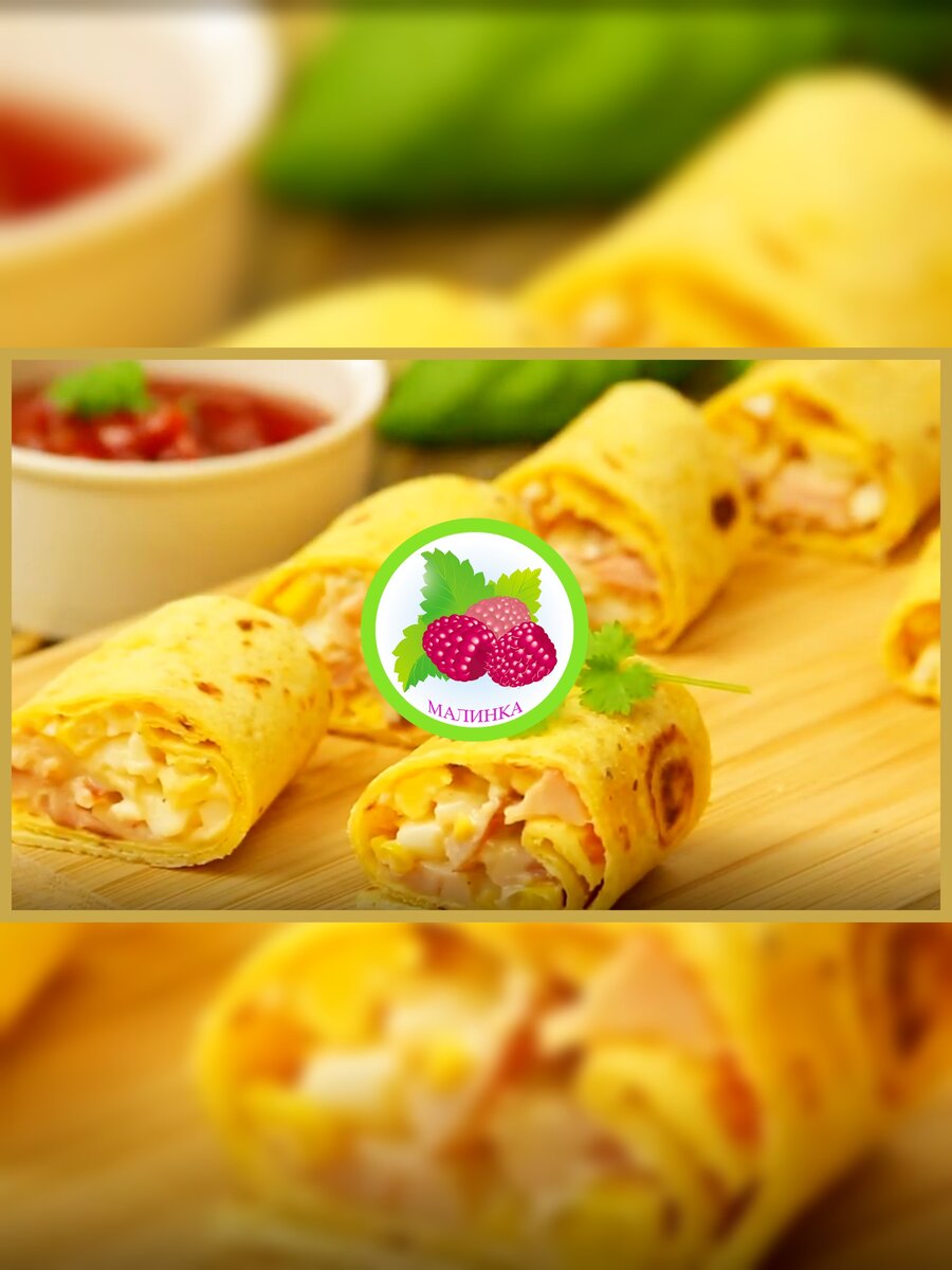 Рулеты из кукурузной лепешки с копченой курицей и кукурузой