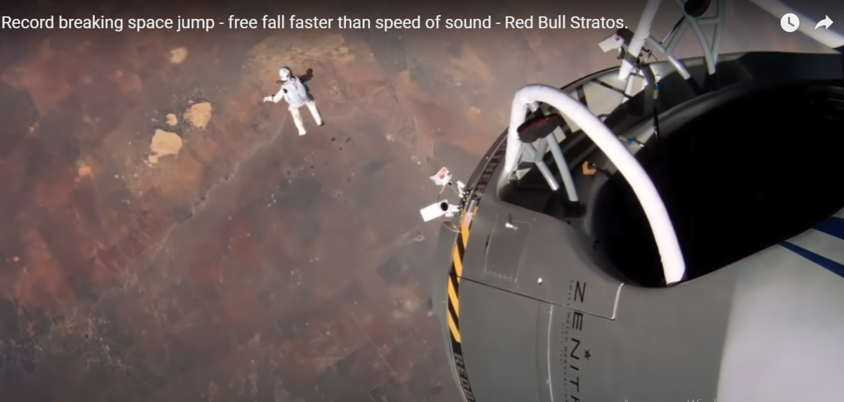 Наверное, каждый в своей жизни совершил что-то без башенное. Для некоторых людей самым необдуманным поступком - собрать одежду и переехать в другой город. Другие считают - езда по шоссе со скоростью 258 км/час безумное занятие. Это ничто по сравнению с тем, что сделали герои этой статьи. Можете вообразить прыжок с высоты 7 560 метров? Прыжок из стратосферы 14.10.2012 г. австрийский парашютист, Феликс Баумгартнер, в 43-и года, совершил прыжок с высоты примерно 38,4 км . В течение одной минуту преодолел звуковой барьер, набрал скорость 1358 км/час и стал первым человеком, которому удалось это сделать. Свободное падение заняло 4 минуты 19 секунд. На приземление ушло 14 минут. (ссылка на видео Прыжок из стратосферы) Схема рекордного полета Ф. Баумгартнера Около 30 камер снимали прыжок Феликса, но картинка в эфир шла с 27-ми секундной задержкой. За это время могла произойти трагедия, которую 8 млн. зрителей не сразу бы заметили. Риск был огромный. Это стало ясно на первой минуте падения, к