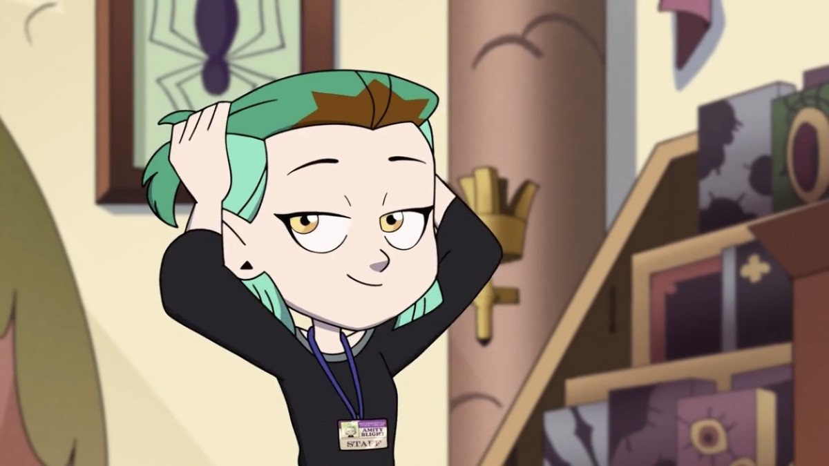 - Это что, Амити работает в библиотеке? В плане сюжета в этом есть большой смысл: она может помочь Луз собрать информацию, необходимую для того, чтобы портал снова заработал. Возможно, Амити поможет Луз найти способ вернуться домой. Хотя именно Амити хочет найти причину, чтобы задержать Луз в их мире. Интересно, чем же всё закончится.