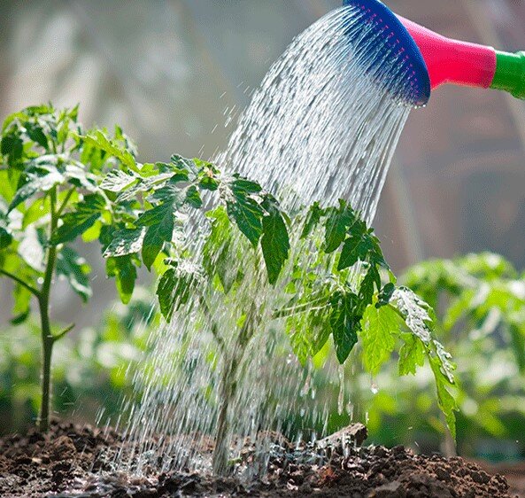 1. Помидоры – поливать эти растения необходимо под корень, лучшее время для проведения полива – Утро. Только что высаженную рассаду нужно обильно полить и прервать поливы примерно на неделю. После возобновляем поливы с началом цветения поливаем растение раз в неделю, а после и вовсе раз в 10-12 дней.