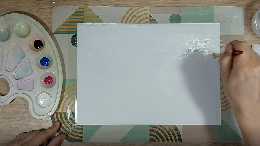 Невероятно нежная и несложная картина даже для начинающих юных художников. Попробуйте нарисовать её с детьми, да-да, и Вы тоже рисуйте! Вам тоже самим понравится! Для начала подготовим все материалы. Плотная бумага, несколько кисточек разного размера, гуашь (в этот раз понадобиться всего 4 цвета - синяя, розовая, белая и чёрная), немного воды. В этой статье я рассказывала подробнее, что нужно для занятий с детьми гуашью, чтобы было удобно и чисто. Для начала закрасим весь лист тонким слоем белой краски (загрунтуем), обязательно добавляем немного воды. Это нужно, чтобы следующий слой хорошо размазывался и не оставлял непрезентабельных пятен. Стараемся делать это побыстрее, чтобы краска не успела высохнуть. Проведём линию горизонта (это отличная картина, чтобы вообще познакомиться с этим термином). Ставим точки белой, розовой и синей краски полукругом. Затем размазываем их также полукругом, начиная с центра. Теперь нарисуем море. Ставим точки синей и розовой краски, размазываем их из сто