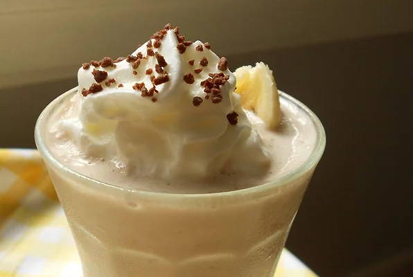 Шоколадно-банановый молочный коктейль Вкусный молочный коктейль для жарких летних дней! Ингредиенты: 1 банан, замороженный и нарезанный 6 столовых ложек порошковой смеси для солодовых напитков со вкусом шоколада (например, Ovaltine®) 1 стакан молока 2 стакана ванильного мороженого Пошаговый рецепт: Поместите замороженные кусочки банана, сухую смесь для напитков, молоко и ванильное мороженое в блендер и взбейте до однородной кремообразной массы. Разлить в большие стаканы. В одной порции: 439 калорий; белок 10,8 г; углеводы 63,8 г; жир 17,1 г; холестерин 67,8 мг; натрий 197,5 мг. Полное питание
