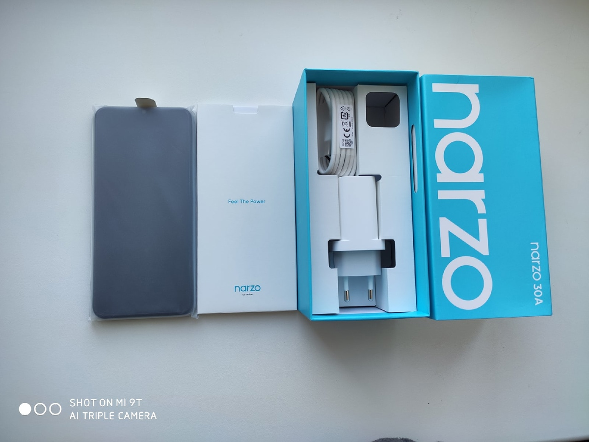 Сегодня пойдет речь о смартфоне Realme Narzo 30A, заказанном мною с Aliexpress. Комплект поставки Смартфон Realme Narzo 30A с предварительно наклеенной на экран защитной плёнкой, мануал, гарантийный талон, скрепка для лотка SIM-карты, адаптер питания и шнур USB Type-C. Внешний вид Realme Narzo 30A продается в двух расцветках — голубой(«Laser Blue») и черный(«Laser Black»). Установлен 60 Гц IPS дисплей диагональю 6,5ʺ с соотношением сторон 20:9 и разрешением 1600x720 (HD+). Присутствует олеофобное покрытие. Также закруглены края по технологии 2.5D. Мультитач — 10 касаний. На нижней грани расположен разъём Jack 3.5 мм, микрофон, порт USB Type-C и отверстия динамика. Задняя крышка пластиковая, практически не залапывается. Производительность Смартфон имеет мощнейший восьмиядерный процессор Mediatek Helio G85.Оперативная память (LPDDR4X) объёмом 4 Гб, постоянная - объёмом в 64 Гб. Заряжается гаджет примерно за 3 часа. Характеристики: Приобрести Realme Narzo 30A можно на Aliexpress. Если п