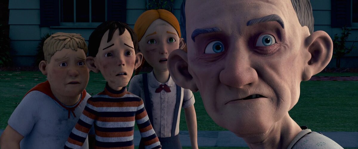 Подросток по имени Ди Джей остаётся дома с няней. У его приятеля Заглотыша несчастье — его мяч попал на газон дома напротив. Всем известно, что всё то, что попало на этот газон, хозяин дома — Мистер Небберкрякер — забирает себе. Попытка вернуть мяч кончается встречей приятеля с хозяином дома. Хозяин так злится на мальчика за то, что тот вступил на его газон, что у него случается инфаркт, и его увозят в больницу. Дом, тем временем, начинает жить своей жизнью и съедает Мосола парня няни Ди Джея, собаку и двух полицейских. Вскоре приятели становятся свидетелями того, что дом чуть не съел и девочку Дженни. Они сумели её спасти, и теперь они ведут наблюдение за домом, пытаясь проникнуть в его тайну. Втроём они пытаются противостоять дому-монстру, ведь впереди Хэллоуин. Дети предпринимают отчаянные попытки обезвредить дом, сообщают в полицию, проникают внутрь дома чтобы погасить огонь (сердце дома) в камине но все тщетно. Тем временем из больницы возвращается мистер Небберкрякер, и он расска