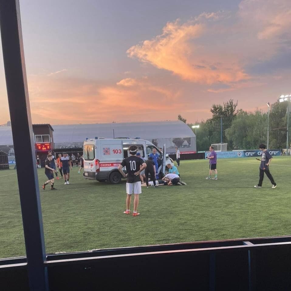 Во время Юго-Западной лиги ЛФЛ, которая прошла вчера на стадионе "Вернадка Парк" в Москве, футболист Максим Д. потерял сознание и умер он, выступал за команду "Браавос".