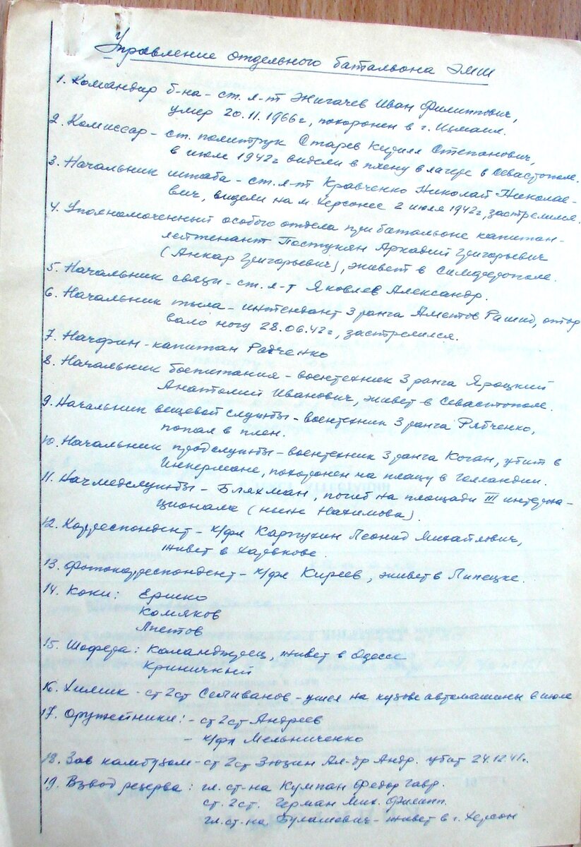 Данных о посещении военкомом батальона 11-го дзота нет, зато есть данные о том, что днем 18.12.41г. для усиления дзотов № 11 и 12 была направлена группа из 7 человек из состава разведвзвода батальона во главе с зам. военкома. В результате этой попытки погибли главстаршина Король Константин Иванович и замполит Потапенко Макар Николаевич.