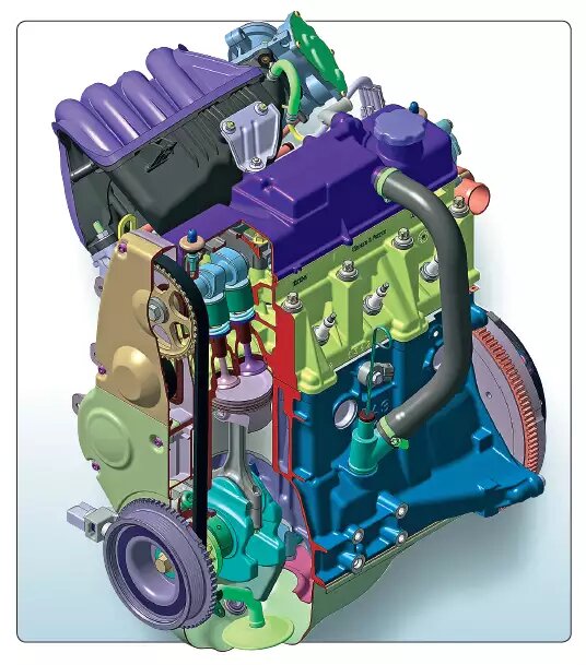 Поэтому пошли по уже проторенной дорожке. Ведь несколькими годами ранее обновление пережил 16-клапанный двигатель того же объема (ВАЗ-21126), на котором обкатали некоторые технические решения. Причем унифицировать смогли не только подход, но и многие детали, например шатун с вкладышами, поршневой палец и кольца. Блок цилиндров хоть и с собственным индексом, но в точности как у двигателя ВАЗ-21126: с дополнительными форсунками для охлаждения поршней маслом и платохонингованием стенок цилиндров, снижающим продолжительность обкатки.