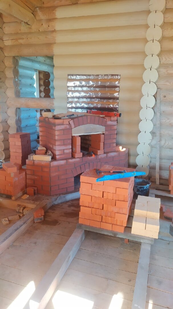 Строим камин в деревянном доме (глава 6), установили арку,полку,дымосборник