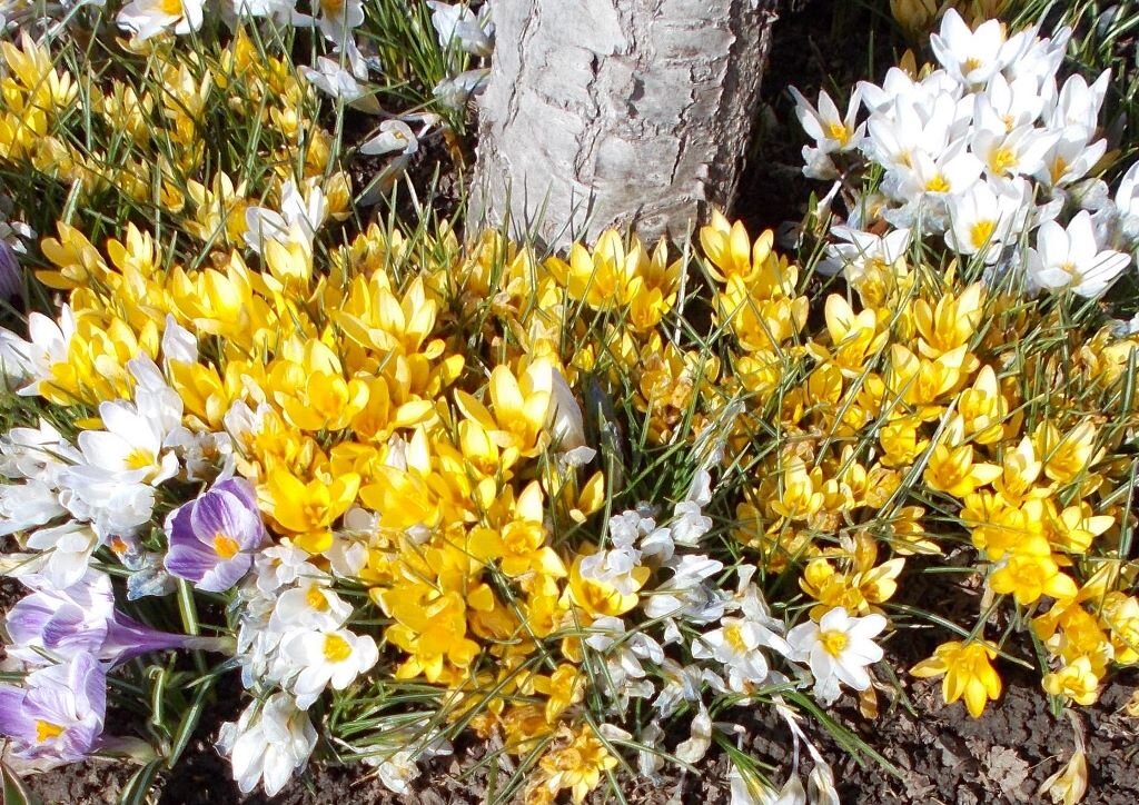Желтые цветы в саду, как маленькие солнышки, способны оживить любой цветник, создать веселое, радостное настроение в любую погоду, начиная с ранней весны и до поздней осени. Именно поэтому у меня в каждом цветнике присутствую желтые цветы, о которых я сейчас расскажу. В конце апреля, как только растает снег, расцветают желтые крокусы в приствольном круге под сливой. Посажены там крокусы различных расцветок, но желтые расцветают первыми и радуют своим солнечным цветом. Крокусы – это клубнелуковичные растения, очень неприхотливые, на одном месте могут расти несколько лет. Почти одновременно с крокусами в самой нижней части моей альпийской горки зацветает калужница болотная – неприхотливое многолетнее растение, предпочитает влажные солнечные места. Размножается как делением куста, так и самосевом. В начале мая расцветают тюльпаны. И, несмотря на разнообразие окрасок, желтые тюльпаны всегда привлекают внимание. С конца мая и до середины июня на моей клумбе красуются маленькие солнышки –