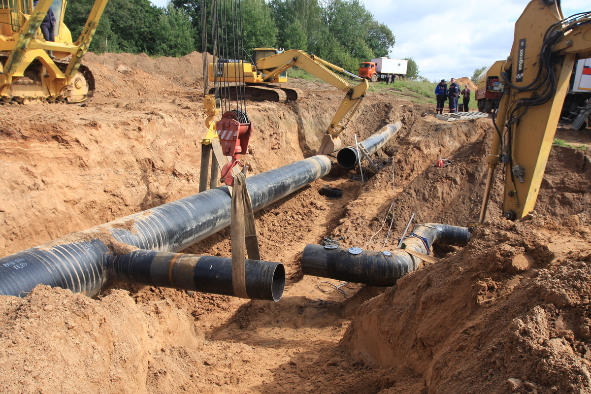 При подземной прокладке (а это в подавляющем количестве случаев) трубы закладываются на глубину 0,8–0,1 м. При строительстве через водные либо обводнённые участки грунта проводится профилактика всплытия трубы и совершается балластировка (ЖБ-блоки, анкерные крепления, засыпка минеральным грунтом и др.)