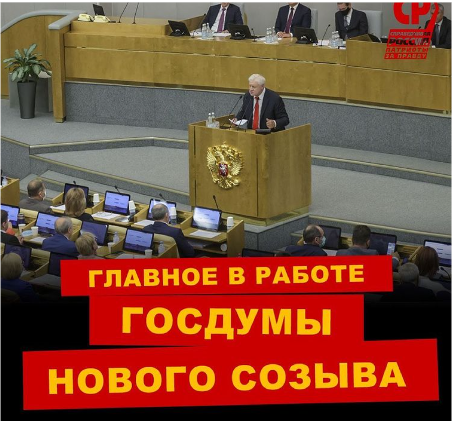 Госдума VII созыва подошла к финишу с рекордным падением рейтинга – с 52,1% в 2016 году до 34% в июне 2021 года (данные ВЦИОМ). Главная причина возросшего недоверия граждан к депутатам - пенсионная реформа. Отмену пенсионной реформы партия «СПРАВЕДЛИВАЯ РОССИЯ – ЗА ПРАВДУ» ставит во главу угла для своей госдумовской фракции будущего VIII созыва. Партия приняла решение добиваться совершенствования прогрессивной налоговой шкалы и установления справедливого базового дохода. «СПРАВЕДЛИВАЯ РОССИЯ – ЗА ПРАВДУ» идёт на выборы 2021 года с решимостью достичь поставленных целей, основанных на социально-экономических требованиях подавляющего большинства граждан России. Справедливость победит, перемены будут!