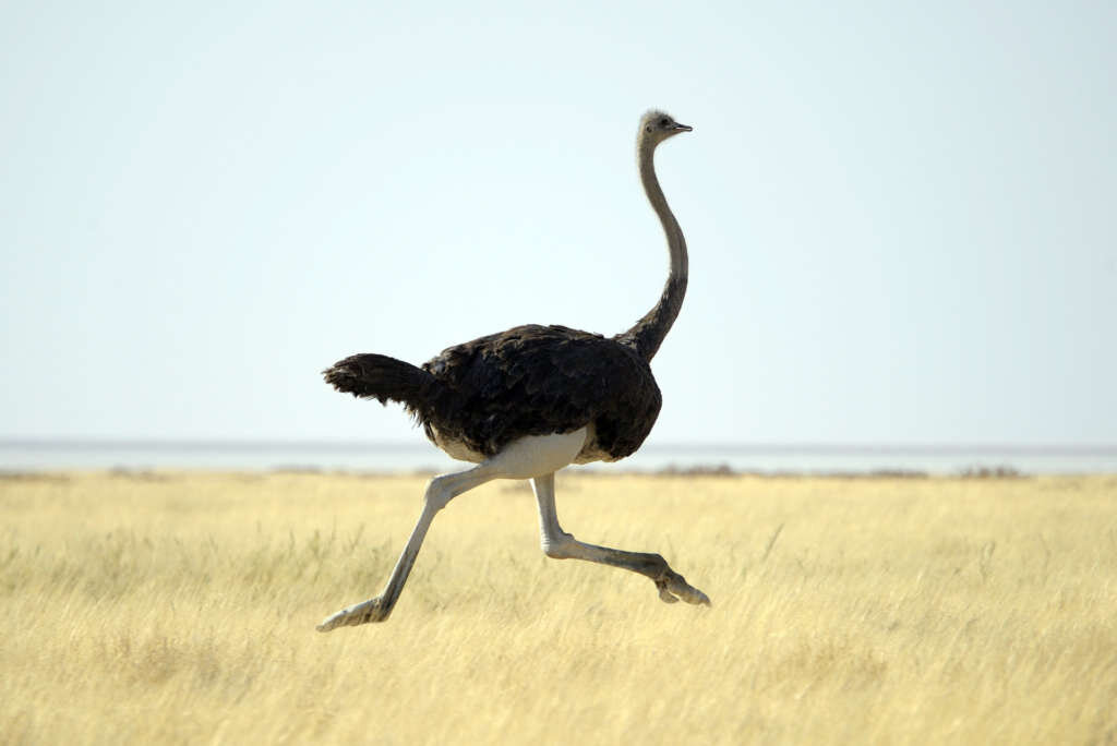 Бегая страус довольно экономно расходует энергию, благодаря чему он может очень долго двигаться со стабильно высокой скоростью. Оказалось, что и эта способность наблюдается только у него.