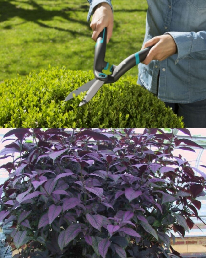 Персидский щитовник (Strobilantes dyerianus), известный своей поразительной пурпурной и темно-зеленой листвой, омываемой мерцающим серебром, процветает во влажной плодородной почве с частичным солнечным освещением. Это тропическое вечнозеленое растение достигает 120 см в высоту и 90 см в ширину, но может стать норовистым. Ежегодная обрезка способствует более полному росту, и лучше всего делать ее после того, как растение перейдет в состояние покоя поздней осенью или в начале зимы. Персидская щитовка считается многолетником в зонах жесткости растений 10 и 11 Министерства сельского хозяйства России, а в более холодном климате ее выращивают как однолетник. 1. Опустите секаторы в емкость, наполненную спиртом, чтобы продезинфицировать лезвия. Перед использованием дайте им высохнуть на воздухе. 2. Обрежьте секатором примерно одну треть длины всех здоровых стеблей. 3. Выберите все слабые, мертвые или больные стебли и обрежьте их в месте их происхождения на растении. 4. Очистите и утилизируйте