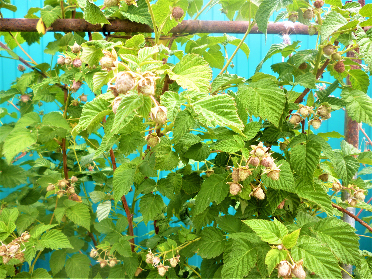 Нарочно не стала ставить на обложку красивую картинку из интернета, а прикрепила фото своей малины, пускай пока и не спелой. На фото- один кустик. Несмотря на нынешнюю засуху, малинка намерена порадовать хозяйку. А я хочу рассказать вам о том, как увеличить урожай малины на кусте почти вдвое. То есть вместо десяти кустиков можно оставить всего 5-6, а малины собрать столько же. Это удобно тем, у кого места маловато, да и просто приятно посмотреть на кустики, сплошь увешанные ягодами. У меня с местом проблем нет, но мне нравится, что не нужно бродить по длинному малиннику между колючими кустами и срывать по 5 ягодок то там, то сям. То ли дело - встал к одному кустику, да собирай. Обобрал - шагнул к следующему. В особо урожайные годы я еще и табуретку с собой беру, чтобы обирать ягодки с комфортом. Способ этот довольно старый и многим известный. Я им пользуюсь уже лет 15. Но вот глянула я малину у соседей, поболтала с некоторыми, и выяснилось: у нас в поселке о такой обрезке никто и не зн