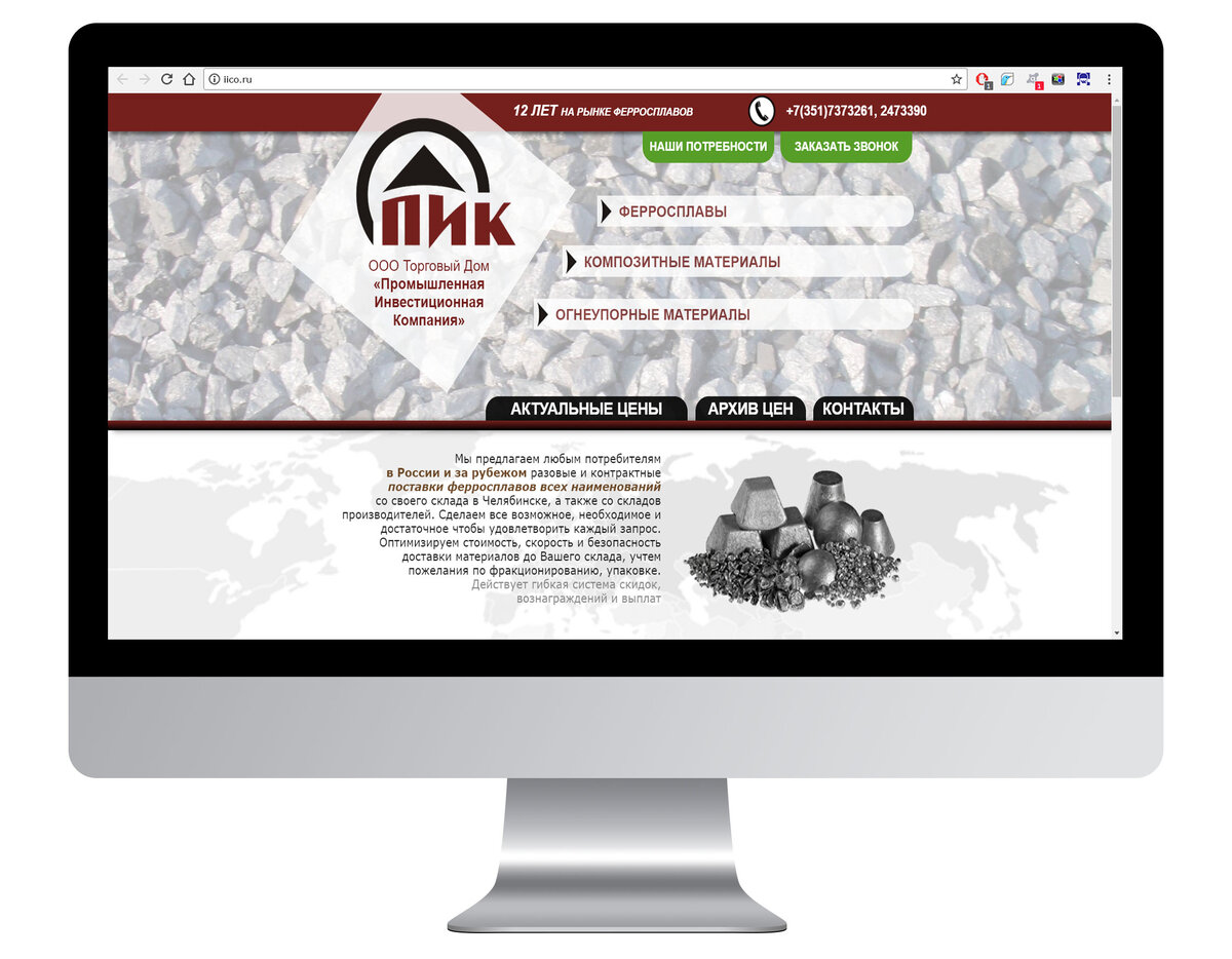 Торговый дом “ПИК” предлагает любым потребителями в России и за рубежом разовые и контрактные поставки ферросплавов всех наименований со своего склада в Челябинске, а также складов производителей. Компания делает всё возможное для удовлетворения всех запросов, делая приоритет на стоимости, скорости и безопасности доставки.