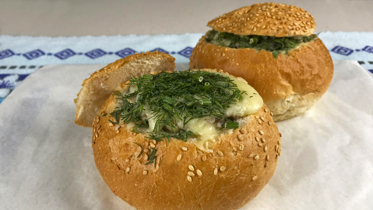 Если надоедает пицца, готовим жульен в хрустящей булочке. Делается быстро, а съедается ещё быстрее