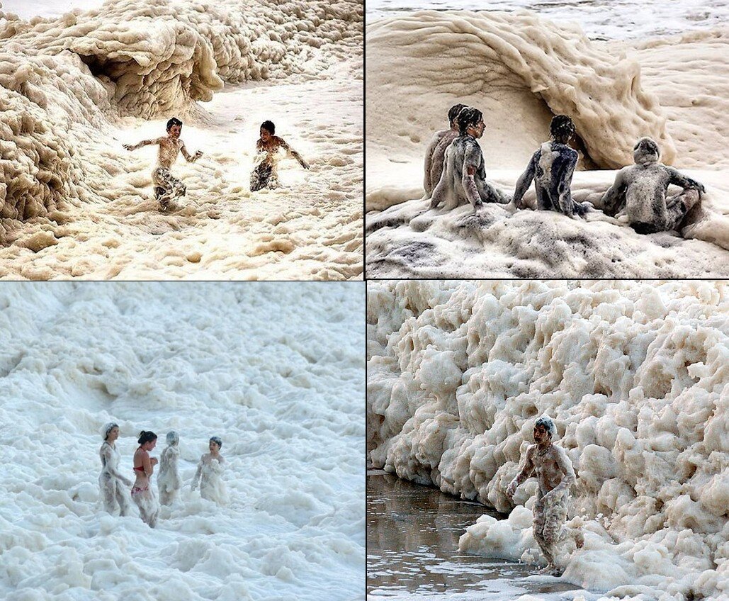 ⠀ Cappuccino Coast или Прибрежный капуччино - очень редкий природный феномен, получивший такое название за сходство с пенкой у кофе Капуччино. Время от времени в разных уголках нашей планеты за несколько минут образуется большой пузырь пены и устремляется к берегу. Иногда затопление пеной происходит на десятки километров. Внезапно появившись, она исчезает потом без следа. ⠀