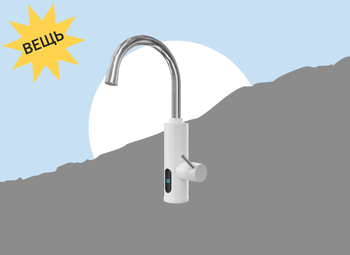 Замена кухонному смесителю на время отключения горячей воды Проточный электрический водонагреватель Electrolux Taptronic НС-1246478, который выглядит, как обычный смеситель. Что умеет Похож на обычный кран, но нагревает воду до 60°C — такая температура соответствует норме СанПиН для труб с горячей водой. Прибор защищен от нагрева без воды и перегрева, а степень влагозащиты — IPX4: брызг он не боится, но лучше не поливать его водой во время работы. Мощности 3,3 кВт хватает, чтобы моментально нагреть воду, но финальная температура зависит от напора: чем он меньше, тем теплее вода. Дисплей у основания крана показывает, насколько прогрелась вода. Какие особенности При подключении устройство нужно заземлить. Подключать нагреватель разрешено в розетку, расположенную как минимум в 60 см от раковины или ванны. Минимальное давление воды в трубах — 0,4 бар, если оно будет ниже, то прибор перестанет нагревать воду. Производитель рекомендует докупить фильтр грубой очистки, если вода поступает прям