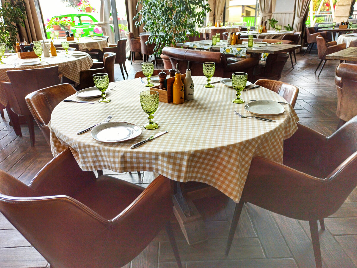 Здравствуйте, дорогие читатели и гости моего блога! Гуляя по Кремлёвской набережной мы заглянули в кафе итальянской кухни. В нем было несколько залов и летняя терраса, украшенная цветами и зеленью. Остановили свой выбор на втором варианте. Было не слишком жарко: навесы создавали приятную тень. Если говорить об интерьере в целом: он выполнен в коричневых тонах. Бросаются в глаза яркие акценты. Прежде всего, это жёлтые спелые лимоны, которые нарисованы под потолком, изображены на подушках и декоративных кувшинах. К Италии нас отсылают и симпатичные веточки оливы, нарисованные на стенах и барной стойке. Называется место Familia. Людей в момент нашего прихода здесь было немного. В основном, все расположились на улице. С меню можно ознакомиться уже на входе. В нем в основном представлено всё то, что мы можем попробовать в центре Средиземноморья. Конечно же пицца - она здесь 9 видов. Ещё паста и ризотто, супы, салаты, холодные и горячие закуски, десерты. Самые дорогие блюда: осьминог в