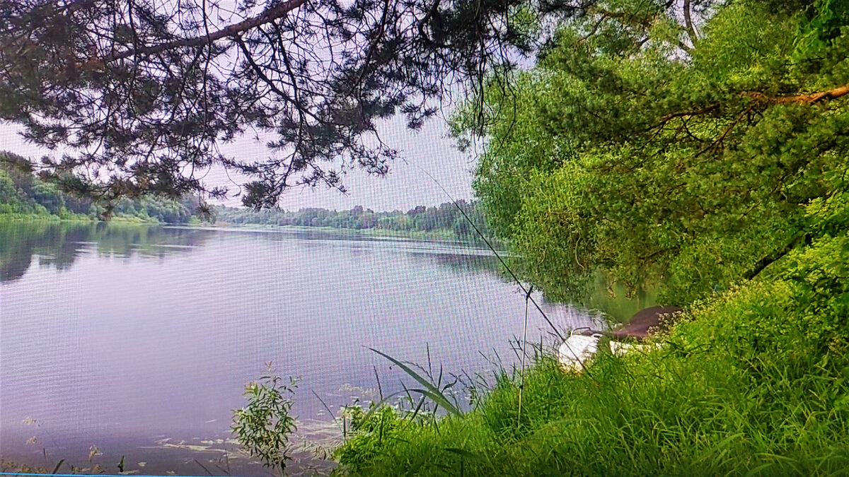 Эта рыбалка в конце июня на реке запомнится навсегда. В начале все шло как обычно. Приехали вечером, разбили лагерь. Установили прицеп-дачу, раскинули и укрепили маркизу, сложили продукты и наживки в холодильник, собрали и подготовили фидеры, замешали прикормку. После трудов легли отдыхать. Ночи июньские коротки. Несколько часов сна и уже опять на ногах. Провели стартовый закорм и начали планомерный лов рыбы. Но до 7 часов утра никаких результатов не было. Солнце поднялось уже достаточно высоко, начиналась жара. Место у нас подобрано замечательное. Рядом с огромной сосной, растущей на береговом склоне. Около восьми утра наши рыболовные места оказываются в тени ветвей этой сосны и уже на весь день. Ловить комфортно, солнце не печет. Купаться можно практически рядом.