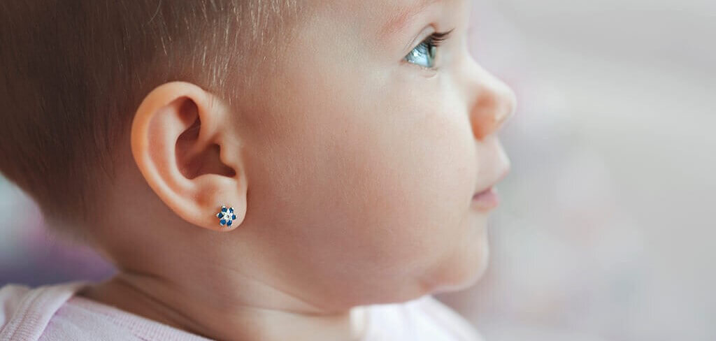 Важно правильно выбрать сережку для вашего малыша. Лучше брать серьги маленькие, плоские и круглые. Без острых краев, обязательно застежка должна закрывать заднюю часть серьги. Не стоит брать висячие. Ваш малыш может легко потянуть за свисающие сережки и пораниться.
