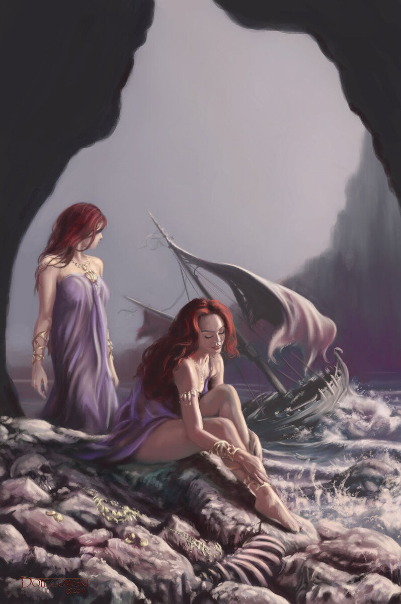 Сиренам было предсказано, что они погибнут, когда кто-либо из путников пройдёт мимо их острова, не поддавшись искушению. Поэтому, когда мимо них проплыл корабль Одиссея, они бросились в море и обратились в утёсы, либо сбросили перья и утопились.