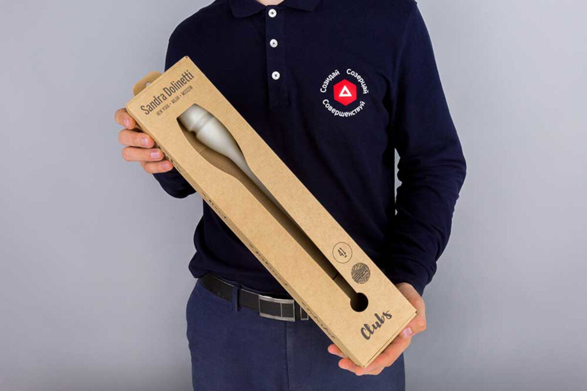 Специалисты из компании Антэк разработали конструкцию и дизайн коробки для упаковки булав для художественной гимнастики. Булавы размещены в ложементе из вспененного полиуретана, который «вписали» в подходящую коробку из гофрокартона. Коробку изготовили из бурого гофрированного картона с вырубным окошком в форме булавы и евро-отверстием - для вывешивания коробки на витринных стойках спортивных магазинов. Дизайн оформления коробки При помощи флексопечати на внешнюю поверхность упаковки в один цвет нанесены логотип производителя и информация о товаре. Понравилась статья про упаковку для гимнастических булав? Поставь лайк и подпишись на наш канал, чтобы не пропустить новые статьи про упаковку, в том числе и для спортинвентаря!