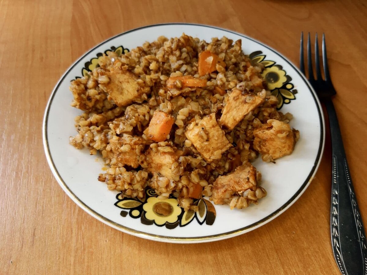 Мы такие голодные, а в холодильнике только кусок свинины и гречка. Может быть рецепт, который я вам сейчас опишу и существует, но я действовала по велению души и голода, и все мои манипуляции с мясом были исключительно интуитивными. В общем, любые совпадения случайны :) У меня первый раз было такое. Когда ты полностью погружаешься в процесс, творишь, отдаешься ему полностью, а по итогу получается вкусное блюдо, которое нравится не только тебе и ты понимаешь, что кое-что ты все-таки умеешь. Это называется состояние потока. Многие люди стремятся испытать его на себе, большинство о нем даже никогда не слышало, а мне посчастливилось больше всех - я ощутила это на себе. Такое может произойти только когда занимаешься любимым делом, я каждому желаю это почувствовать. Вы сразу поймете, что это то самое чувство. Вот, что у меня получилось в итоге. Поверьте на слово, что на вкус эта гречка намного лучше, чем на вид. Я в Яндекс Дзен совсем недавно и мне еще стоит поучиться, как быть фудблогером,