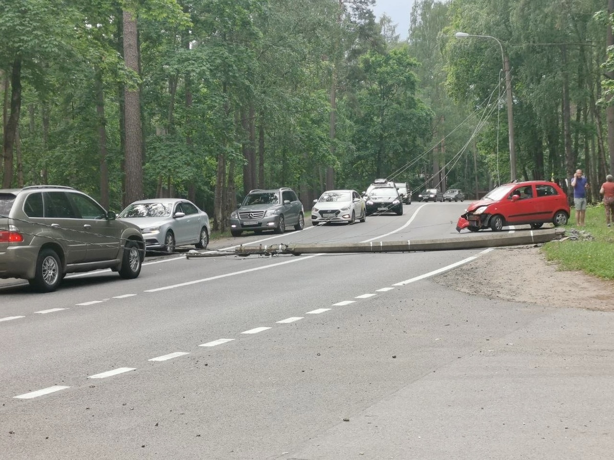 На Приморском шоссе произошла авария между Шевроле и столбом.