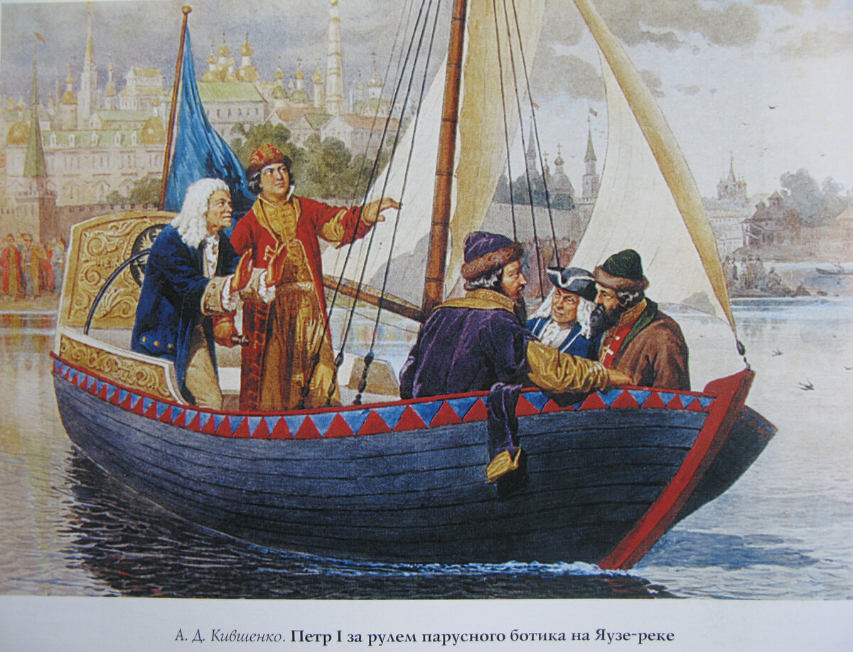 Когда исполнилось Петру шестнадцать, затеял он построить на Плещеевом озере, в Переяславле-Залесском, первую флотилию , положив тем самым начало российскому кораблестроению. Эта очередная потеха заставила Петра заняться арифметикой и геометрией, освоить различные астрономические и корабельные инструменты , чему обучали его тоже иноземцы-голландцы Франц Тиммерман и Карстен Брант. месяцами стал он пропадать на озере, чем приводил матушку свою Наталью Кирилловну в великое смятение. Мать боялась , что её Петрушка утонет, и не знала, что предпринять , чтобы привязать сына к Москве . Новая затея казалась ей еще хуже и опаснее, чем потешные игры возле Преображенского и ночные кутежи в поганом Кукуе И тогда Наталья Кирилловна надумала женить сына на молодой красавице и стала присматривать будущую невестку среди лучших столичных невест .