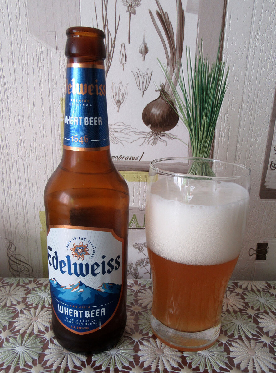 Продолжаю тему "немцы". На очереди лицензионный австриец "Edelweiss". На это пиво мои коллеги уже сделали не один обзор, так что Америку я не открою. Я уже пил пиво под этим брендом. Но давно, более 10 лет назад. С тех пор я это пиво не видел. И вот не так давно я увидел это пиво в супермаркете "Да". Ради интереса решил посчитать, какой же по счету "русский иностранец" у ОПХ, который я опробовал за последние несколько лет. Получился 12-й: Heineken, Gosser, Affligem, Amstel, Guinness, Krusovice, Staropramen, Zlaty Bazant, Tiger, Desperados, Miller. Edelweiss. Алкоголь 4.9. ЭНС не указана. Производитель ООО "ОПХ". Санкт-Петербург. Объем 0.45л. Пробка оригинальная. Цвет - желто-грязный. Консистенция мутноватая. Пенная шапка выраженная, достаточно стойкая. В аромате травы, сам аромат выражен несильно. Во вкусе чуть солода, чуть трав и даже еле ощутимая хмелевая горчинка. Но все это выражено неявно. Вкус, скажем так, "мягкий". Однако питко, освежающе и даже вкусно. Мне понравилось. Для лет