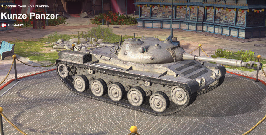 Kunze Panzer — новый премиумный легкий танк VII уровня. Очень непонятный аппарат. С одной стороны, неплохая машина. Есть скорость, "интересности" в огневой мощи. Но с другой стороны, куча недостатков и невнятное позиционирование — зачем он? Приколюха. Голдовый камуфляж "заводила" можно получить только отдельным предложением. После получения танка игроки могли наблюдать такое предложение: Этот камуфляж меняет название на Kunze Panzer Заводила. Причем отдельно этот камо купить нельзя. Точно такая же фишка с машинами серии Вархаммер. Плюсы Основные плюсы — отличные УВН и высокая разовая альфа: По разовому урону Kunze Panzer является рекордсменом. Что дает машине полу-ПТшный геймплей. А "гнущееся" орудие позволяет стать для противников занозой. Минусы Отсутствие динамики минус очевидный. Kunze Panzer — самый "тяжелый" ЛТ на уровне. По тяговооруженности двигателя уступает всем конкурентам. Плюс плохая проходимость по грунтам. Танк разгоняется нехотя. Нет рывка, для разгона нужно время. Что
