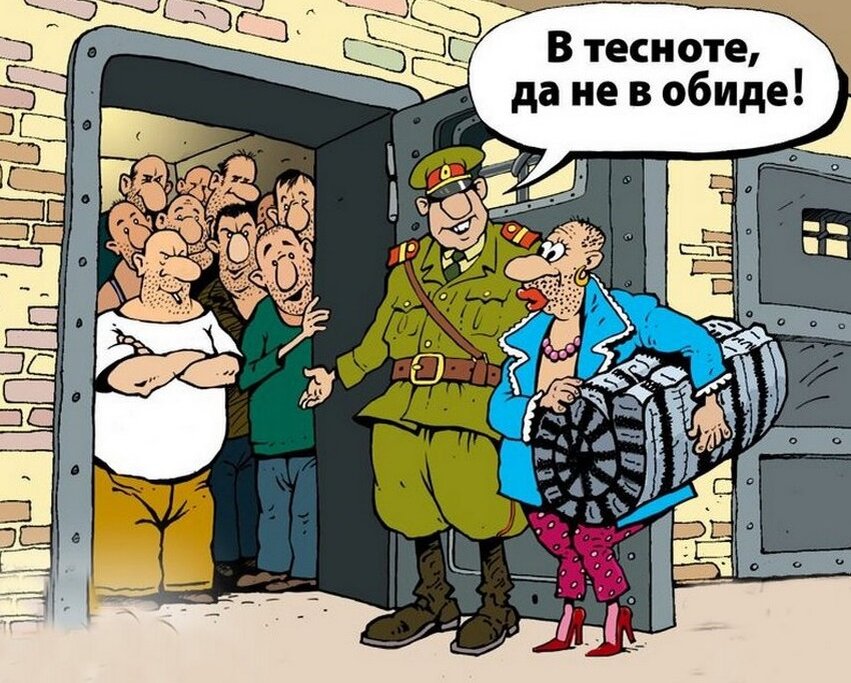 Надзиратель – заключенному: – К тебе жена пришла на свидание! Узник испуганно: – Избави боже! Скажите ей, что меня нет дома... ***** Приходит мать навестить сына в тюрьму. Стоит, значит, и кричит: – Ваня! Ваня! Тут появляется здоровый зек и спрашивает: – Слышь, мать, тебе кого? Мать: – Мне Ваню! Зек: – А, этого петуха, что ли? Мать: – Вот, и здесь, проказник дерется! ***** Из объяснительной записки: «Такого-то числа сержант Сидоров, патрулируя свой участок, обнаружил в толпе опасного преступника-рецидивиста. Для задержания был вынужден применить табельное оружие. В списках убитых и раненых преступник обнаружен не был». ***** Женщина посещает мужа в тюрьме. – Ну, как живете? Денег хватает? – заботливо интересуется заключенный. – Не переживай, милый, все у нас в порядке. За твою поимку нам столько заплатили, что мы ни в чем не нуждаемся. ***** День Святого Валентина. Кому-то не повезло. Одним из них оказался мужчина. Естественно, он напился. Пьяный мужчина пролез в середину трамвая и зао