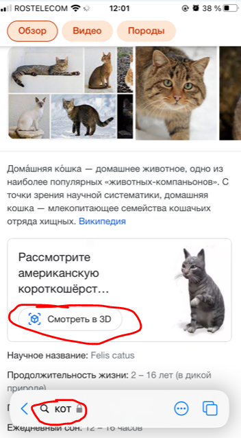 Итак, первым делом открываем браузер и набираем название животного и пролистываем в браузере до пункта "Смотреть в 3D"