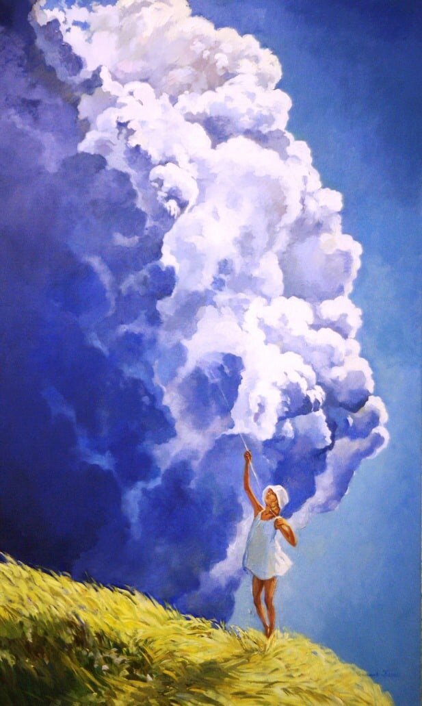 Как мы? Да ржем как кони. Сядем на подоконник, сдвинув ростки бегоний, чахлые, из горшка. Ты мне откроешь тайну: кто-то на орбитальной станции капитанов делает облака. Он придаёт им форму чашечек из фарфора, мачт, парусов Босфора и выпускает в мир птицей закатно-рыжей. Видишь, они над крышей. Даже они нас слышат, как голоса брамин. Смейся: петляют юзом ящерки и медузы. Клоун с огромным пузом дует в свой контрабас. Мама придёт из кухни: звать дураков опухла, вставят наушник