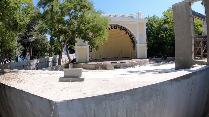 Бетонные ступени и режиссёрская рубка всё ещё на своих местах Третье лето без «Ракушки» Во время съёмки на территории летней эстрады, несмотря на принятое ещё в октябре прошлого года решение, съёмочная группа «Первого Севастопольского» так и не застала рабочих, которые занимались бы сносом бетонных ступеней и режиссёрской рубки. Они находятся всё ещё на своих обычных местах. А между тем, Севастопольцы крайне возмущены тем, что площадка, которая является объектом культурного наследия так стоит с не законченной реконструкцией. «Задаю вопрос нашему губернатору города Севастополя. До каких пор наша ракушка будет стоять загороженная забором? Мы, ветераны, вечером приходили, смотрели концерт, слушали музыку, детей смотрели, как они выступали, а она стоит три года уже за забором», – возмущается житель города. Другой житель города вспоминает, что приходили на «Ракушку», как на праздник. Это было развлечением. Жители всегда с удовольствием слушали концерты самодеятельности. «Причём с бо