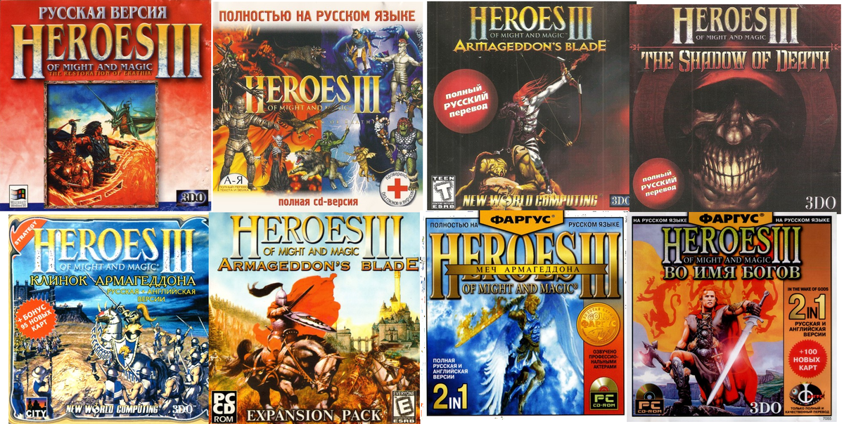 За 20 с лишним лет существования, игра претерпела множество изменений и переизданий, включая 2 официальных аддона. Оригинальный язык игры – английский, поэтому в России требовалась локализация. Официальным локализатором в России стала компания Бука, но это не помешало появлению на рынке множества неофициальных и пиратских переводов. К тому же сама Бука меняла свои же варианты переводов с выпуском аддонов и версии Complete. Аддон Horn of the Abyss также имеет собственную локализацию. В связи со всеми перечисленными факторами, в геройском сообществе сложилось множество вариаций терминологий игровых элементов, и иногда даже возникает недопонимание при общении в сети. Давайте посмотрим на самые удивительные переводы от отечественных локализаторов, среди которых числятся "Наша Марка", Ubisoft, "Русский проект", "XXI век", City, "Фаргус", "7волк" и официальная "Бука". ГОРОДА В игре имеется 9 видов городов и только 2 из них имели одинаковый перевод в любой локализации: Замок (Castle) и Башня