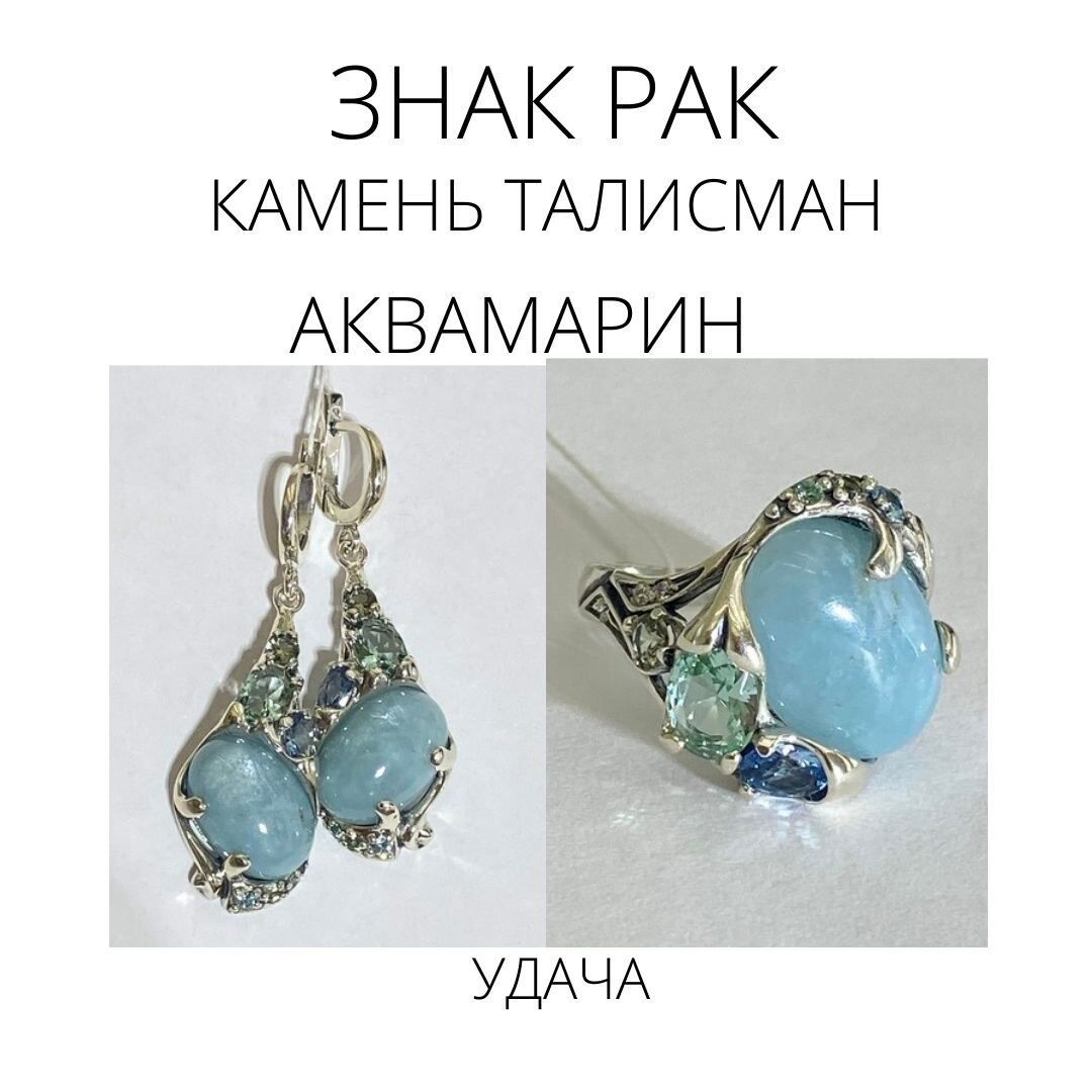 Цена кольца 4500, серег 8400 Ношение украшений с аквамарином будет способствовать у Рака стабильности душевного состояния, им будет легче заводить новые знакомства. Кольцо и серьги "Премьера-аквамарин"