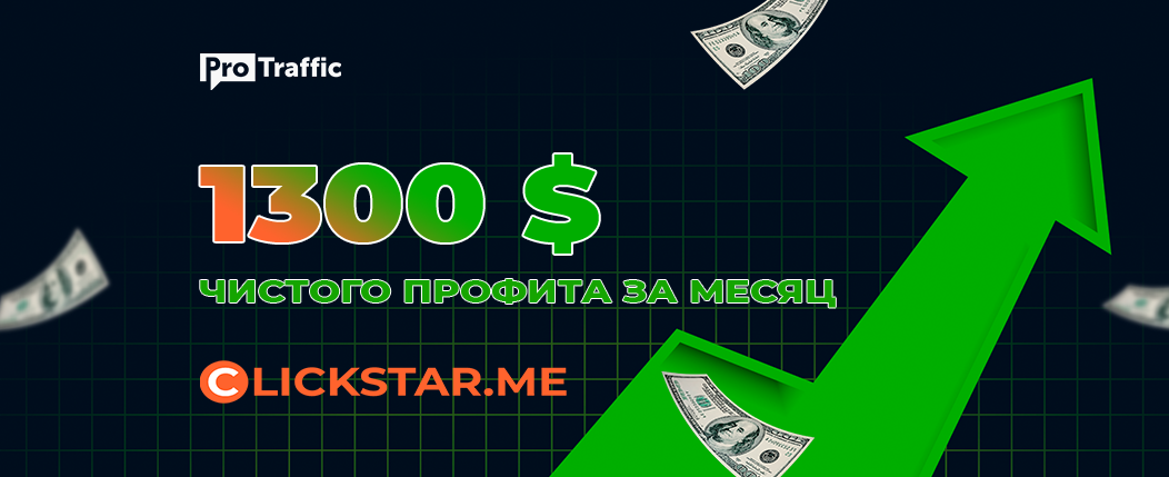 Также специально для наших читателей Clickstar раздает промики: 5% на счет при пополнении от $200 и 10% при пополнении от $500. Регистрируйтесь, вводите промокод «PROTRAFFIC» и забирайте свой бонус. Удачи!