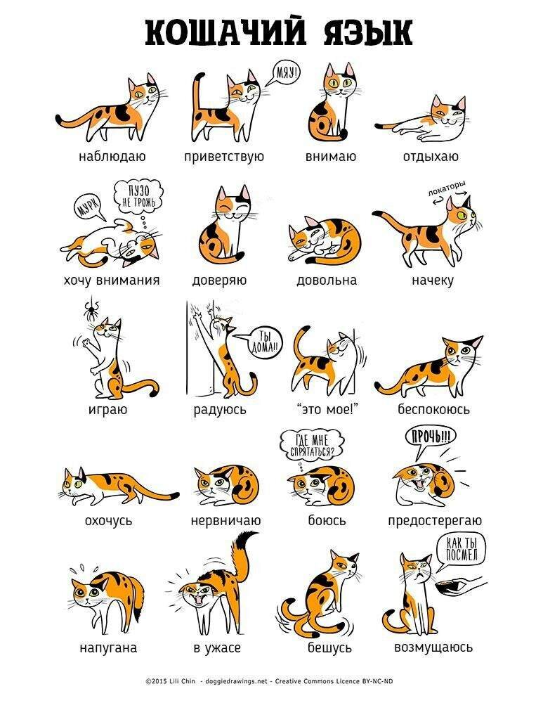 У каждый кошки есть свой особенный язык общения с хозяином. Мы всегда понимаем, когда наш питомец хочет есть, играть или ей просто скучно. Но при всей уникальности этих языков у них существует что-то общее. Описанные ниже особенности помогут неподготовленному человеку или человеку, который только завел себе кошку и не научился с ней пока взаимодействовать понять, что требует кошка. "Хочу есть". Тут никаких сложностей не будет. Кошка будет тереться о ваши ноги, ходить кругами, не давая вам пройти, хвост будет задран. Вы сможете услышать довольное "МЯ!" - это точный признак того, что пришло время пообедать. Если вы захотели перекусить бутербродом перед телевизоров, а ваш кот сидит рядом и заглядываем вам в рот своими голодными глазами - это тоже признак, что пора его покормить. И хоть кошкам нельзя употреблять в пишу еду с человеческого стола, они этого не знают и очень любят попрошайничать. Кошки отличные манипуляторы. Если она трется о вас лбом, мило мурлыкает и заглядывает в глаза -
