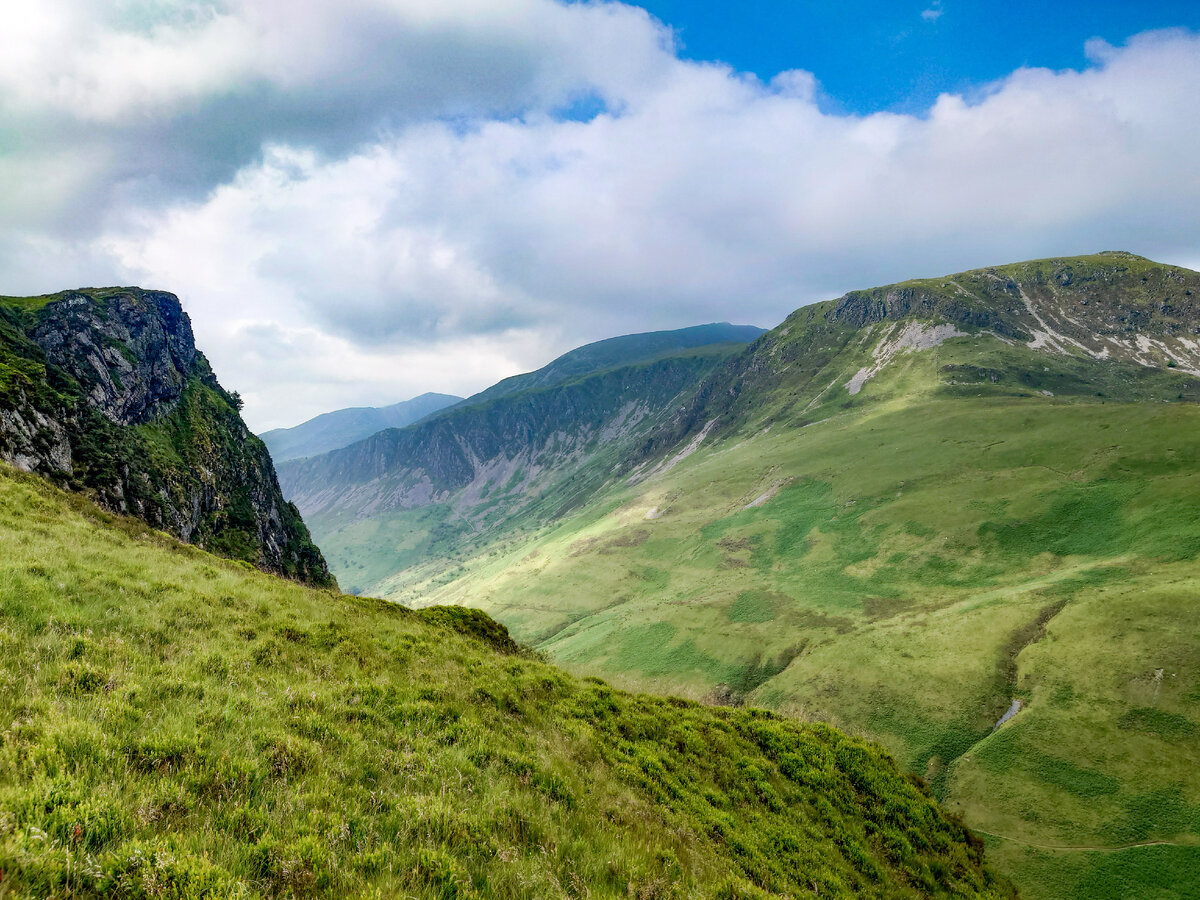 На днях съездили в Сноудонию – национальный парк в Уэльсе. В Уэльсе я уже был до этого, но не на природе, а в городе – в Кардиффе, но в целом Уэльс это конечно не про города, а про природу, и среди всех этих зеленых склонов, долин и озер, совсем не думается ни про что городское. Подписывайтесь на канал в Дзене или в Телеграме Кстати, если вам кажется, что Сноудония подозрительно слишком созвучна с фамилией Эдварда Сноудена, то это не просто так – название Сноудонии произошло от самой высокой горы Уэльса Сноудон, и от этого же места получили свою фамилию предки Сноудена, которые были из этих мест. На Сноудон мы так и не залезли, потому что нам хватило восхождения на Cadar Idris до этого, и пока мы туда шли, вокруг между скал летали реактивные самолеты – как раз в тех местах пролегает т. н. Mach Loop – путь среди нескольких долин используемых военными для тренировки полетов на низких высотах. Так что в день отъезда мы специально заехали на удобный обзорный пункт, но, к сожалению, в тот