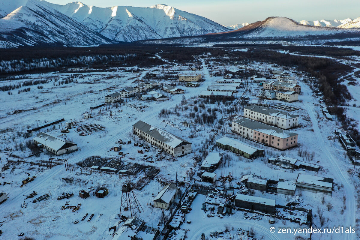 Мы выбирались на внедорожнике с севера Якутии с Тикси в сторону Якутска по одному из самых сложных автозимников в этих местах - "Индигирке". Этот зимник начинается в Усть - Нере и заканчивается через 1200км в Чокурдахе. Большую часть зимник идет по реке Индигирка и проходит через знаменитую "Индигирскую трубу". Местные называют Индигирку "дорогой жизни", места здесь лютые и одни из самых красивых на всём Дальнем Востоке и Сибири. Верхоянский хребет, Момский и хребет Черского - это всё здесь. Устав в бесконечных поисках объездов коварных индигирских наледей, мы остановились на границе Момского и Оймяконского улуса. Налили себе чай, достали плитку шоколада и обратили внимание, что на берегу стоят каки-то здания. На карте ничего уже нет, а куча зданий есть - странные дела. Подняв дрон, на берегу Индигирки, где река делает характерную "подкову", увидел огромный брошенный поселок. Оказалось, что мы наткнулись на покинутый поселок Хатыннах или Арга-Мой, расположенный в "Индигирской трубе