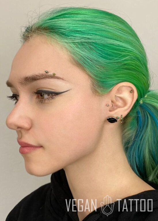 Пирсинг хряща или хеликс (криволинейный внешний ободок уха) широко распространён по всему миру на протяжении долгого времени и продолжает набирать популярность в западной культуре. Заживать данный вид прокола может от 3 до 9 месяцев - это довольно долго, ведь хрящ ушной раковины плохо снабжается кровью. Строение каждого отдельно взятого уха уникально и имеет свои анатомические особенности, которые должен учитывать мастер. В выборе места прокола не последнюю роль играет и эстетика - пирсинг можно расположить практически в любом месте вдоль окружности уха, даже там, где начинается плотная ткань. Козелок, или трагус - небольшой хрящ, выступающий над отверстием наружного слухового прохода со стороны лица. Время заживления данного вида пирсинга в среднем составляет 3-9 месяцев по тем же причинам. В зависимости от строения козелка, пирсинг обычно размещают перпендикулярно поверхности кожи, прокол делается на определенном расстоянии от края, чаще в естественной складке кожи. Небольшая штанга