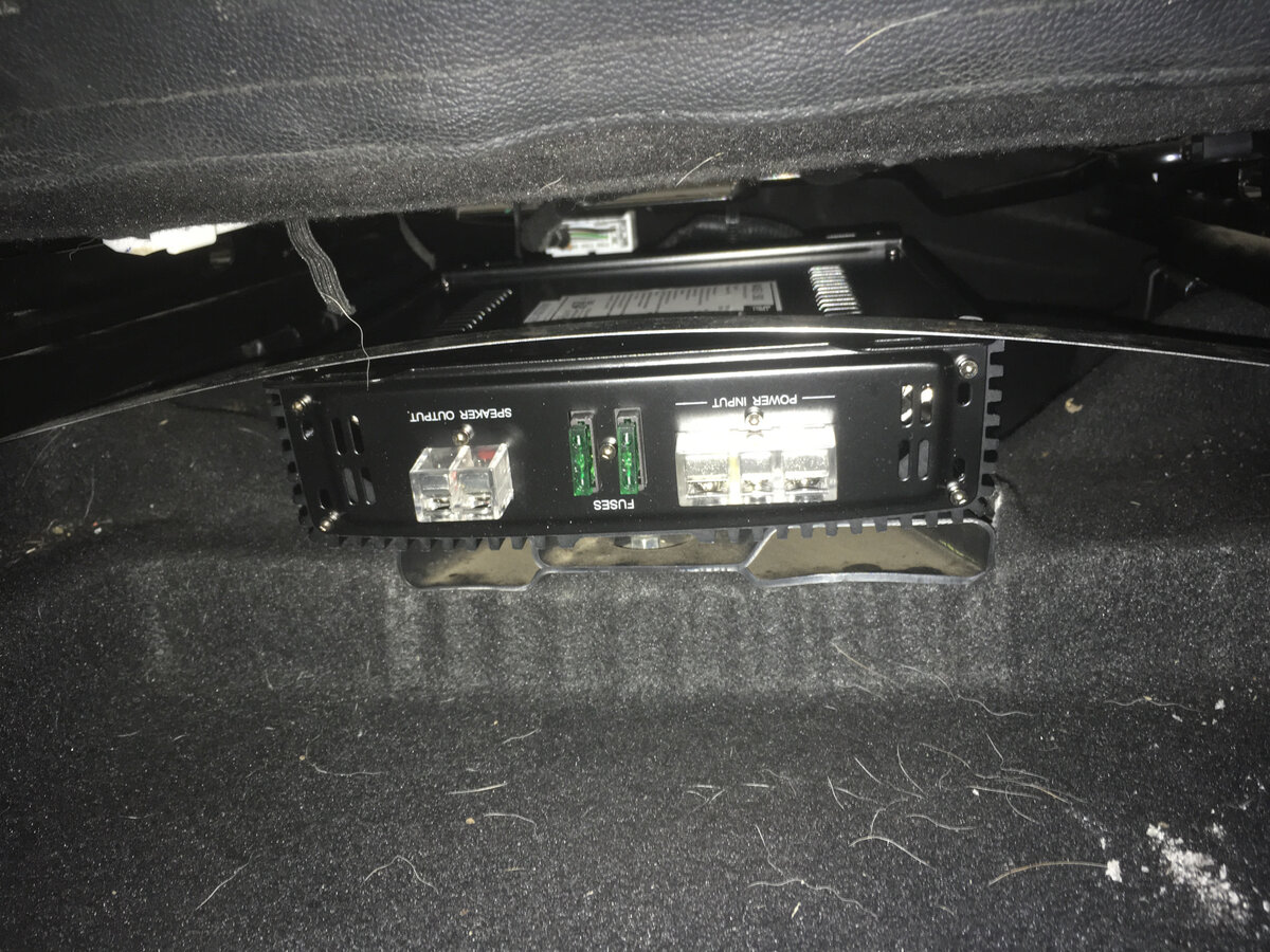 3)Внедрение динамика в стелс короб от компании «Драйв» Теперь пришла очередь поговорить про установку усилителя. Места катастрофически не хватает, даже стелс короб, хоть и занимает его почти нисколько, и то устанавливался со слезами на глазах. Поэтому об установке моноблока в багажник и речи быть не могло. Да и компактные размеры одноканального усилителя D класса, как бы намекали на установку под сидение))) Приложив моноблок в место предполагаемой установки, обнаруживаем, что всё встанет легко! Вроде пылесосишь регулярно, но стоит поглубже заглянуть под сидение… Крутить саморезами к полу совсем не хотелось, дырок/отверстий должно быть ровно столько же, сколько и было! Пощупав полозья водительского сидения, обнаруживаем отверстия в их нижней части. Получае